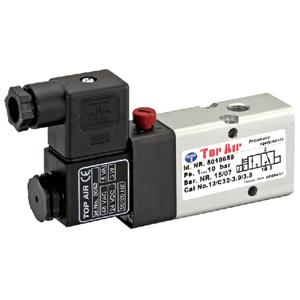 Norminal Size 5, 7, 12 Solenoid pilot actuated Spool with pressure energized soft seals Port size G1/8, G1/4, G1/2 Operating pressure:10 bar Max.  | * The valves are suitable for dry runing. Shell Hydrol DO32, Shell Voltol 64 Esso Febis K32 or oil of equal quality are recommended for the system lubrication ‧Option:Flat Manual override |